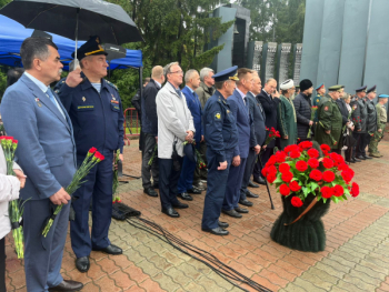 При участии роты почетного караула Центрального военного округа присутствующие почтили память и возложили цветы к мемориалу.